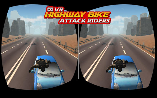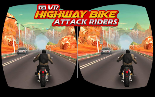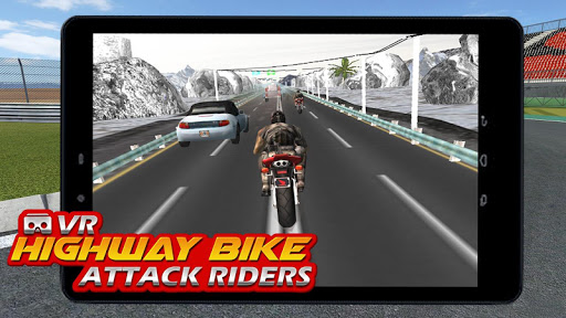 VR Highway Bike Attack Riders is a fast paced bike riding game with no check points and time limits to ride your motorbike. Enjoy bike racing with kicks and punches to knock out the opponent bikers and make stunts with your motorcycle by increasing speed for getting scores & cash while avoiding hard crashes.
