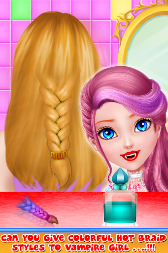 braid is hairdresser hair salon game for girls and mommy. There are secret coiffure braid hairstyles ideas for vampire girls on their wedding. Cute makeup , dressed up and makeover ideas for vampire girls with secret coiffure hair salon.Apply lipstick, eye color, mascara, which shades, eyeliner and jewellery to your favourite vampire girl to look stylish on their wedding.