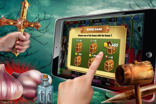 Don’t worry, match three garlic symbols or wooden stakes and you can keep him away and WIN, WIN, WIN!! These vampires are available anytime and anywhere once you download Vampire Slots for your mobile device.