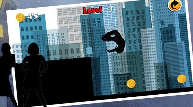Collect coins to unlock and perform all unique stunts to show the best result at different missions! Don’t forget that your character is just a normal mortal man, not supernatural shadow vector runner - avoid the fall from roofs, result of this failing would be character’s death!