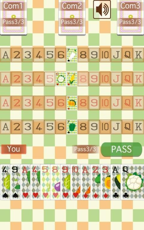 This is a card game called “Sevens(card game)” that you play by using “Vegetable” cards.