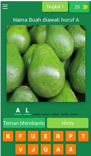 Sebuah permainan menebak gambar Buah-buahan, untuk melatih dan menguji sejauh mana pengetahuan mengenai Buah-buahan