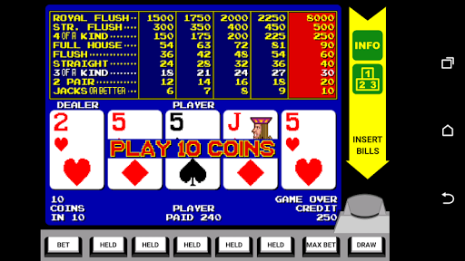 Classic Video Poker "Jacks or Better" Features: 1. Play 1 to 10 coins 2. Free play coins 3. Statistics 4. Leaderboard Have a good time!