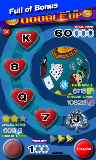 Video Poker Double Up ( previously video poker jackpot ) is a casino video poker game that includes a free poker card game and casino slot free slot machine. It's a fun casino game for free with a multi slot casino free slot game.