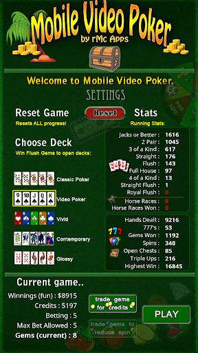 Mobile Video Poker is for fun only, and has taken many months to complete, so please enjoy and let me know if you have any questions or suggestions and i'll be happy to respond :)