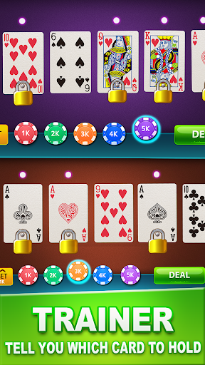 FREE Video Poker Trainer games! The best free card trainer game! Video Poker Trainer teaches you the proper cards to hold that allow you to make the most money from video poker.