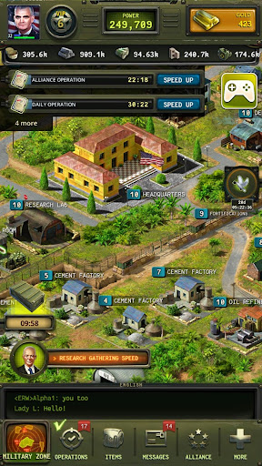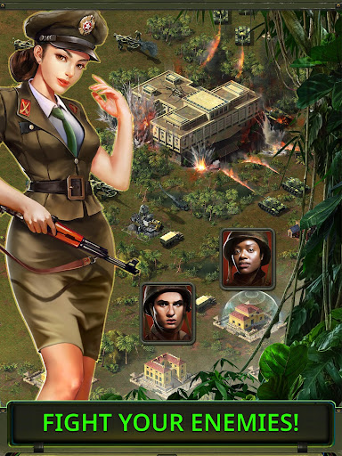 Build and upgrade your barracks to produce war weapons starting from infantry rifles to massive tanks or bomber aircrafts. One you have created an army worthy of great battles, equip your Hero with the invincible military gear and prove your supremacy on the battlefield. You can send reconnaisance planes to scout your target and, if the odds are in your favor, use brute force to destroy you enemy's base. Great battles put you on the top of the rankings, making you renown for your strategic skills in military actions.