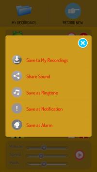 Changed sound can be saved as ringtone, notification, alarm and my recordings library.