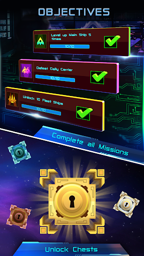 - Build a majestic SPACE FLEET by recruiting captains and upgrading ships