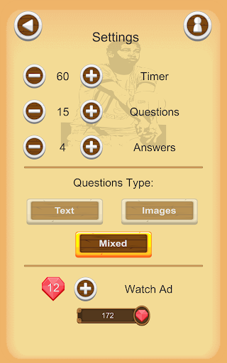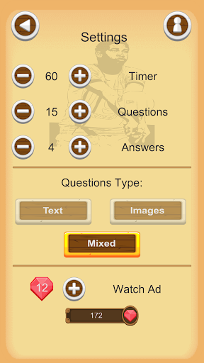 This game is available for free and it offers customizable rules to suit your individual needs. You decide how you want to play. The number of questions, answers, time to make a final decision, you may find on the Settings screen and there you can create YOUR amazing game.