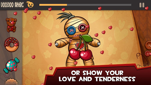 In other real voodoo doll games you just kill the doll with different tortures and weapons. But in this stress reliever game you can also show your love to the black magic creature. This differs Voodoo Magic game from other real voodoo doll games and pain games.