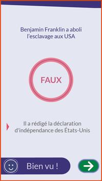 Améliorez votre culture générale en vous frottant aux 2000 questions de ce Vrai ou Faux, un quiz de culture générale, gratuit, qui n’a pas peur de viser haut : histoire, politique, littérature, cinéma, sciences, géographie, médecine, langue française, peinture, musique… Tout y est pour faire progresser vos connaissances de culture générale, avec des questions pas toujours faciles dont les réponses commentées vous feront quitter l’appli encore plus cultivé !