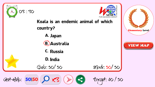 Wquiz is a very knowledgable and great general knowledge containing app about the world map.