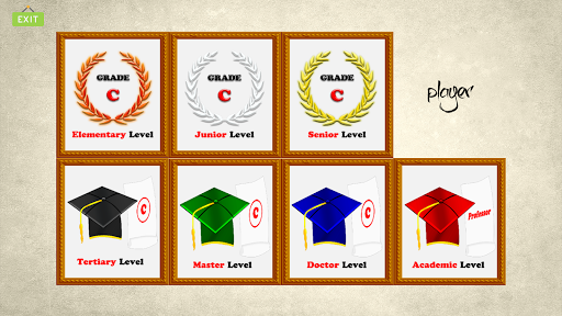 There are 7 levels with increasing difficulty, which brings to you the highest diploma as Professor.