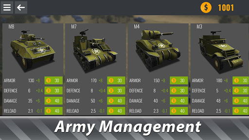 Battlefield of WWII is dangerous, stay out of it! Form your tanks, command to start battle - your armored army will handle the rest. Mind the limits of the battlefield and army size in your strategy. Assemble the best armored army you can put to battle. The battlefield is too small for all those tanks, only one army will remain! Win battle after battle of WWII with your tanks!