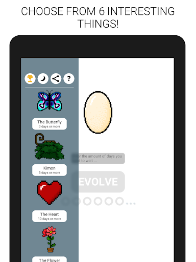 Choose from 6 interesting "Things" and use your Evolution Dots to make them all evolve! But only the most patient ones have what it takes to unlock all 50 achievements!
