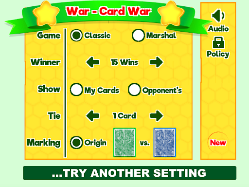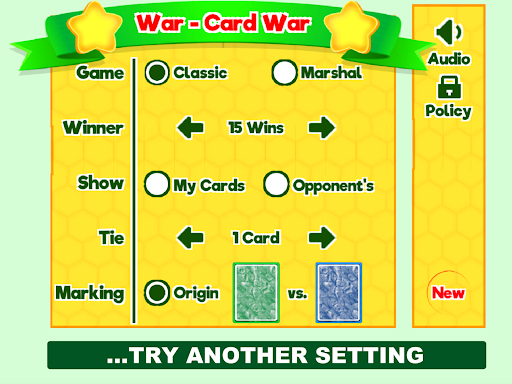 • Adjust the number of cards placed on the table in the event of a tie/war (1, 2,...)
