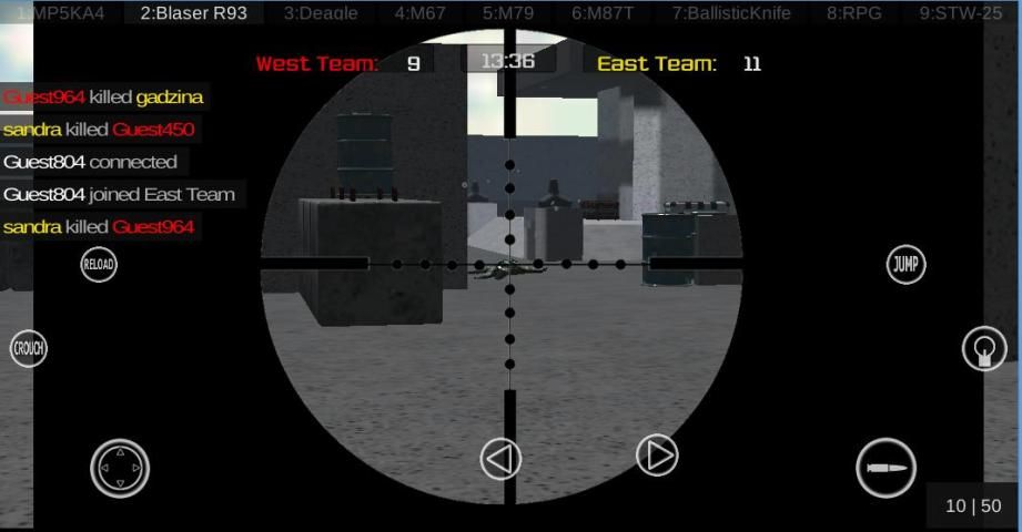 Join the battle between East and West , Choose your side and start fighting with 9 different weapons, All players have the same weapons, so only the professionals will survive!