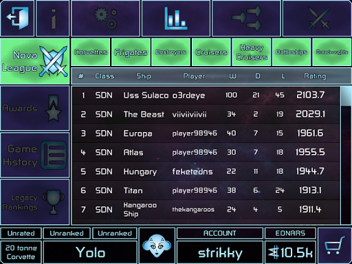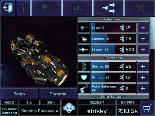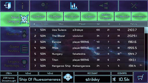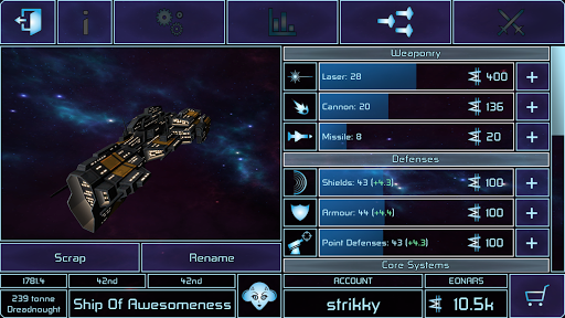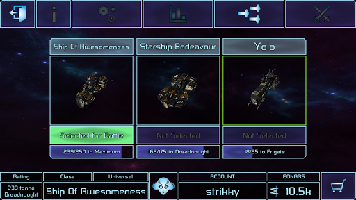 As you progress you'll move through ship categories: Corvette, Frigate, Destroyer, Cruiser, Battleship and finally the ultimate Dreadnought class.