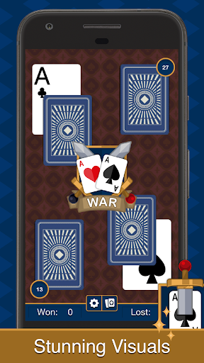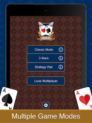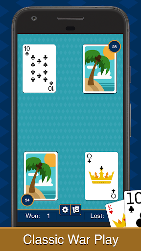 - Classic War is simple and plays exactly like the classic card game. The deck is split into two piles; each player flips over cards from the top of their deck, and the high card wins. Ties are broken with a "war", with extra cards put at stake. The players face off until one opponent completely runs out of cards.