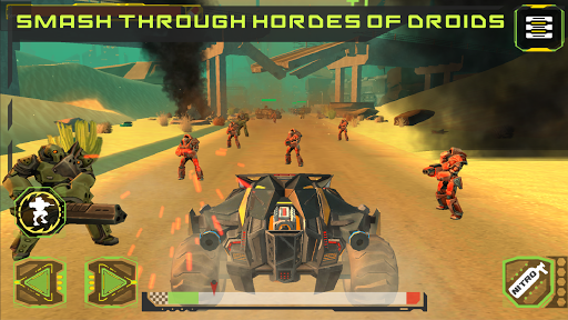 The Vehicle - your armored vehicle is perfect for running down hordes of droids, It is unarmored so it's not effective against heavy enemies. You can upgrade the vehicle's armor and Nitro which gives you a short but powerful boost in speed and acceleration.
