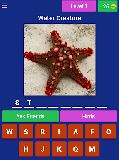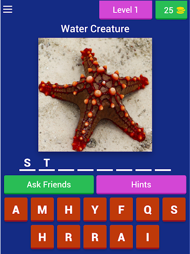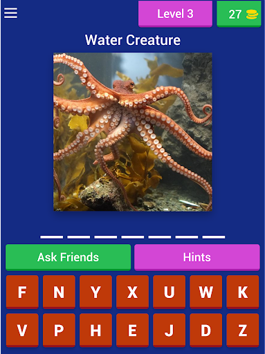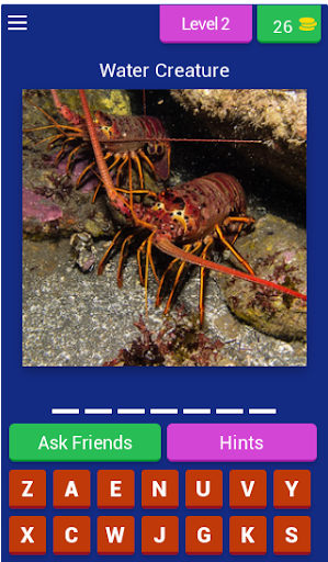 Challenge your mind and test your knowledge with this word puzzle game. A word game to practice and improve your Water Animal (Sea Animal / Underwater Creature) vocabulary.
