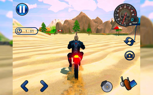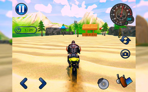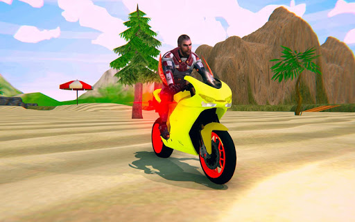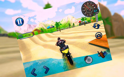 Are you obsessed with water stunt games? Do you really enjoy riding bikes on a beach side view? Do you love the adventure, enthusiasm and charm of riding heavy bikes on an offroad motocross dirt bike environment? If yes then this game is all that you need to install. Just tap on to this free trending game and enjoy the summer fun to its fullest. From its icy blue water rides to its lush green date trees, camel brown sand patches, colorful umbrellas, wooden high jumpers and high mountains all around this beach bike game 2018 is never going to let you get bored of it. The game is full of tricky and yet exciting levels that you can unlock one after the other. One of its most addictive feature is the presence of macho body builders as your bike riders. They not only present you with a thrill of true mad skills stuntman ship but also let you realize the beauty of driving at a high speed. So fear nothing, hit, drift, jump, slip and go beyond the speed limit. Get into the water and sooth your eyes with the icy blue water splashes. Follow the green checkpoints to stay on track and successfully pass through these master tricky levels one after the other. Earn coins and use them to unlock your favorite adventurous superhero bike riders for a ride full of energy and action. The high speed drift bikes are well suited to the offroad mountain bike environment of this mad max drift racing challenge. Apart from that, the burning loops, the surfer breaks, the tricky twists and turns, the steeper ramps, the high jumps and the sporty realistic 3D environment further makes this an addictive xtreme dirt bike driving game 2018.