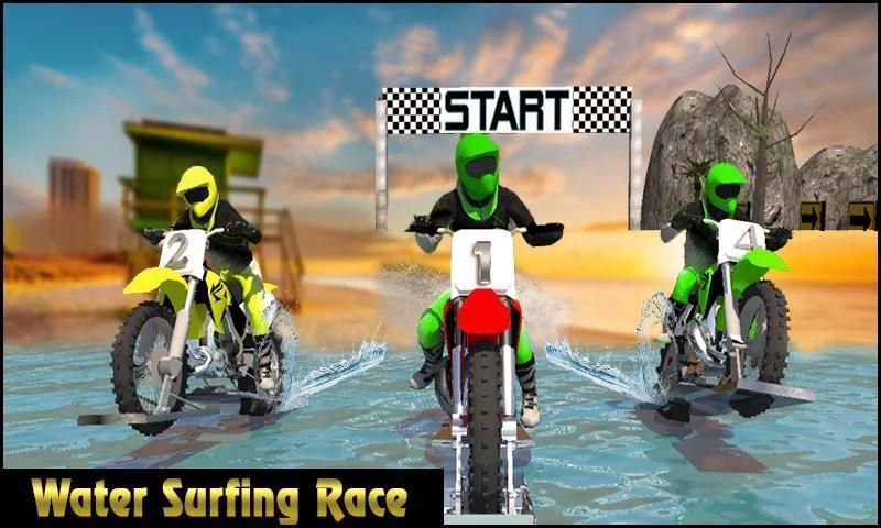 > Extreme water surfing Dirt Bike games challenges with realistic features