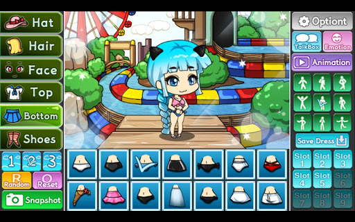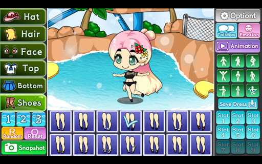 You can change the background, 9 poses and motions, you can also store your Pretty Girl in 9 slots.
