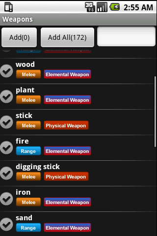 From Stones To LaserYou have your hand, feet, soil and wood. These are the 4 basic weapons you need, to work your way up to discovering your dream weapon Combine weapons with another weapons to learn some suprising weapons. You can have A gun, mace, and with other weapons a Dako or even a Kama.Available Weapons:Angry BirdsNaruto171 Weapons AvailableWe will add more weapons as soon as possible.Premium Versiongt; No Adsgt; Skill Equipmentgt; Stats Display The Premium Version is not available in Android Market as we reside in Philippines, using our store is highly appreaciated Thank you Add Weapon Sets To add on your Review