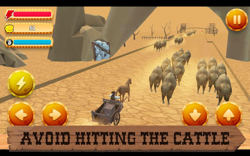 Western cowboy SIM: cattle run in an endless runner game. It is your challenge to ride as far as possible and collect as much points as possible. Use your points to buy bigger and better carriages. This wild west simulator game is only for real western cowboys! Become the western cowboy king!