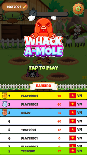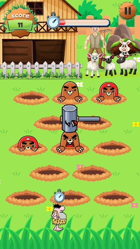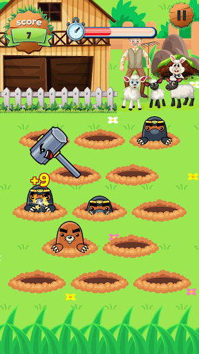 #Each hole contains a single plastic mole and the machinery necessary to move it up and down. Once the game starts, the moles will begin to pop up from their holes at random. The object of the game is to force the individual moles back into their holes by hitting them directly on the head with the mallet, thereby adding to the player's score. The more quickly this is done the higher the final score will be.
