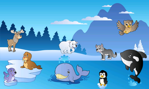 There are three themes that can be played. The first one shows the animals from a farm, as a cow, horse, sheep, dog, pig, duck, rooster, among others. The second presents animals from Africa, as a lion, elephant, giraffe, meerkat, hippo, rhino, antelope, ape, birds and more. And the third display animals from poles as a polar bear, seal, killer whale, wolf, reindeer, penguin.