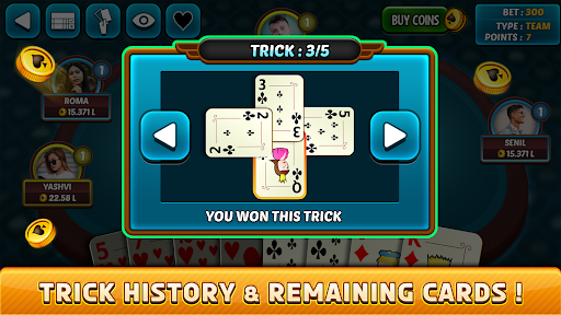 *TRICK HISTORY :- If you want to know which past trick won by which user and which cards were thrown to that trick, for that this feature will help you.