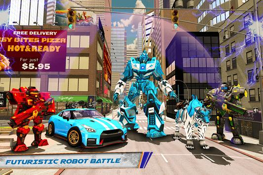 White Tiger Robot Car - US Police Transform Robot the latest of robot transforming games that mixes transform robot white tiger. The tiger robot will show no mercy when its comes to evil bots trying take over your town and this robot tiger will also transform into robot car to get the job done. So get ready to take the police robot lion for the best robot tiger fight of this season. Robot transform games that have white tigers in robot animal games and transforming robot games rank best having robot transformation and futuristic robots with real robots in robot action to give the bet white tiger games.