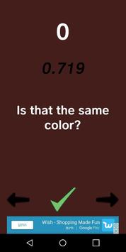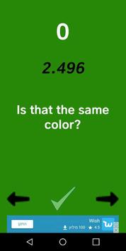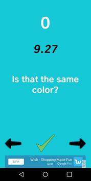 there is a background color that you need to remember and then find that specific color between arraylist of colors and you have only 10 seconds and also the number of the colors in the array is getting bigger as your score is getting higher.