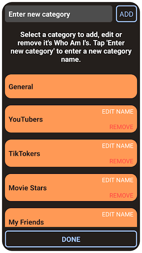 ● ADD your own custom categories of names to guess!