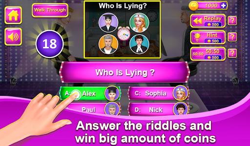 Do you wanted to be a detective and solve impossible cases??? Then this game is made for you. It's full of tricky riddles which will make your mind go crazy. Prove yourself a genius by taking part in this unique contest. In this game, you will be a contestant of the famous contest "Who Is Thief & Killer Mystery Riddles". You need to crack so many riddles to win the contest. Killer and Thief mysteries will definitely be going to trick your mind. So what are you waiting for? Install this game and test your IQ by solving multiple riddles. Don't forget to share it with your friends and family.