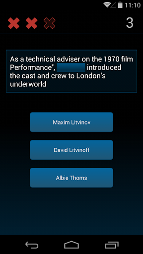 No distractions (apart from the discrete ads that help maintain this app free) or fireworks. Just a plain trivia game that provides you a link to the related Wikipedia article for more in-depth information.