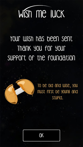 This application works 100% for wishes concerning the health of children with skin diseases where the part of the income is donated. So if "Wish Me Luck" does not meet your request in a given situation, it will always help sick children who have inspired us to create this application.