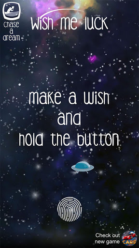 This is the first app which is helping you fulfill your wishes. The App is "sending" your request into the space. Exams, health, money, love and happiness are just some of the examples of wishes for which "Wish Me Luck" can be useful in the real life. All you have to do is make a wish, hold your finger on the screen and "Wish Me Luck" sends them to the place where they will come true.