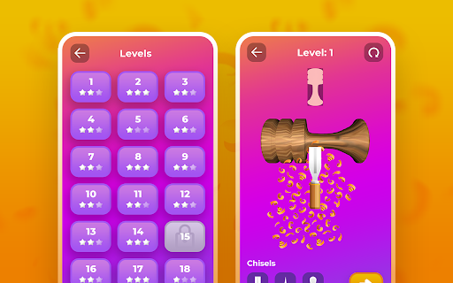 ✨ The aim of this game is to make a perfect cut and turning shapeless items into perfect object. But that’s not all. It won’t get boring after some time because we made sure that you will always be challenged by this game. After finishing the carving, besides accuracy you will gather the money so you can unlock so many amazing features throughout the game. The more you play and level up the more money you will get and unlock the different patterns, chippers, diverse colors and sponges. It gets even more fun by the time!
