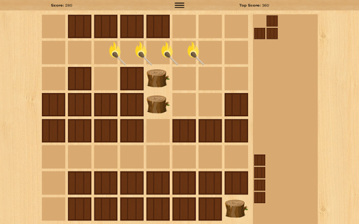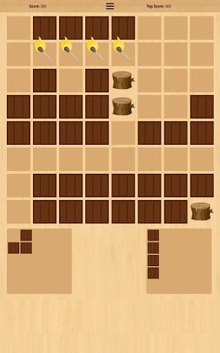 The game features a board and wooden block pieces. The objective of the game is to form lines vertically and/or horizontally on the board using the block pieces while avoiding obstacles.