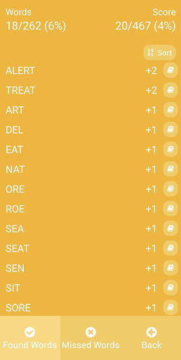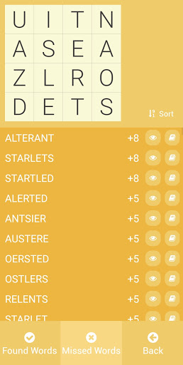 After finishing the game you get an overview of your guesses, the found words and the missing words. Have fun!