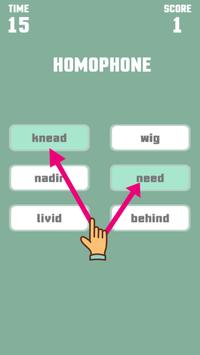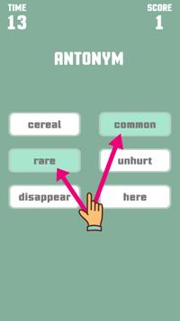 This game is a little puzzle and an addictive game that really challenges everyone from kids to adults to match words that have the relationship by antonym or synonym or homophone. For example: there are 6 given words divided into 2 columns ; your task is to choose 2 words for each column that has that relationship.