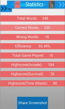 *** Arcade Mode - It is a standard classic mode where you will be given ten words to complete. For each word you have maximum 10 seconds. Try to complete the word as fast as possible to get better score (The left time adds to your score).