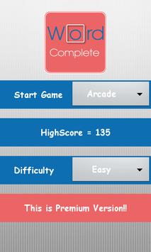 Word complete consists of two difficulty modes - Easy and Hard. In these modes either a single or two letters would be missing. Hard mode seems difficult, play this mode to get higher score (scoring is different in both modes).