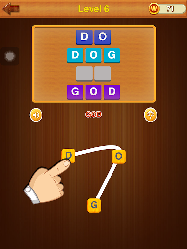 There is no time limit either in "Word Collection " so no need to feel pressured. Take your time dragging your finger over letter sequences. Don't forget you can connect the words in any direction! Swipe up, down, left, right or sideways in order to connect the words from letters.