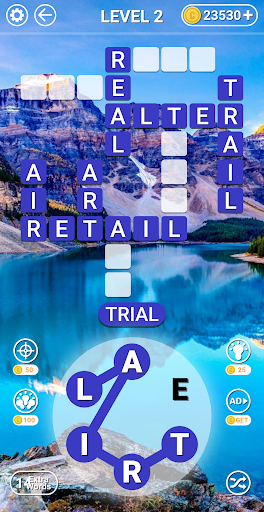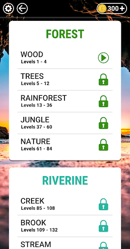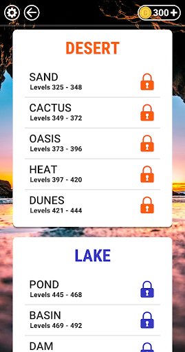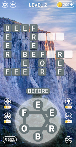 Each levels provide different difficulty. Game levels is divided in some natural appearance such as forest, desert, mountain, polar and many more. Correct swipe the letters horizontally, vertically,or diagonally to form a specific hidden word.