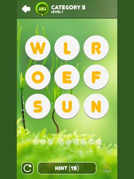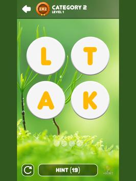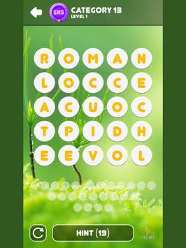 • Hint button can helps you solve puzzle. Touching that to open one letters hidden.